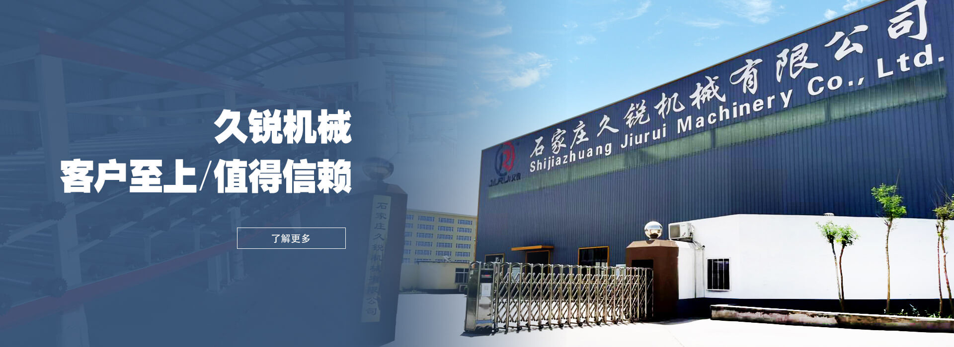 石家莊久銳機(jī)械有限公司是2018年籌建,集設(shè)計(jì)、制造、銷(xiāo)售新型建材機(jī)械設(shè)備于一體的民營(yíng)企業(yè),可提供精準(zhǔn)運(yùn)行的紙面石膏板生產(chǎn)線(xiàn)、石膏粉生產(chǎn)線(xiàn)、礦棉吸音板生產(chǎn)線(xiàn)、硅酸鈣板生產(chǎn)線(xiàn)、水泥壓力板生產(chǎn)線(xiàn)等建材設(shè)備的方案及先進(jìn)的設(shè)備?! 」緭碛型陚涞纳a(chǎn)體系,技術(shù)一流的員工隊(duì)伍,配有成套加工設(shè)備100余臺(tái)套,斥巨資引進(jìn)大型數(shù)控龍門(mén)銑床、數(shù)控鏜床、數(shù)控加工中心、數(shù)控機(jī)床等高端設(shè)備,努力把機(jī)械零部件的制造能力達(dá)到高效、精準(zhǔn),為“久銳”牌高性能整機(jī)提供堅(jiān)實(shí)的保障;進(jìn)而使我公司提供高質(zhì)量、高性能、高效率、節(jié)能環(huán)保、品質(zhì)卓越的生產(chǎn)線(xiàn)于客戶(hù)。使客戶(hù)得到先進(jìn)的生產(chǎn)技術(shù)、精湛的工藝流程、優(yōu)良的產(chǎn)品質(zhì)量、真誠(chéng)及時(shí)到位的售后服務(wù)。...